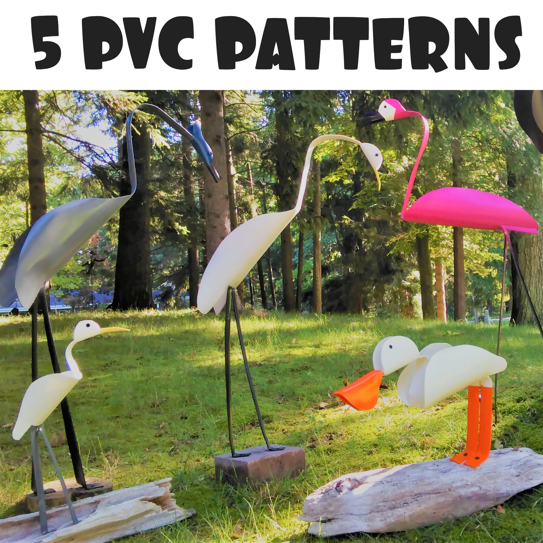 5 PVC Bird patterns and tutorial (PDF) (Pelican/duck not included) You are not buying an actual pvc bird. You are buying the patterns to make the birds yourself. YOU WILL NOT RECEIVE ANYTHING IN THE MAIL. THIS IS A PDF DIGITAL DOWNLOAD FILE. Ok, now that everyone understands this is a digital download....let's get to the fun stuff. Your PDF download will include: * Printable patterns to make the following 5 birds: Blue Heron, Large Egret, Flamingo, Woodpecker and Small Egret. (pelican pictured is NOT INCLUDED) * 40+ pages of pictures, patterns and detailed instructions * How to prepare your patterns * Tracing your patterns * Cutting out your birds * How to heat and cooling your birds * Shaping your birds * Painting your birds * How to prepare and display your birds * A complete list of all the materials needed to make and paint your birds You will need a printer to print off your patterns. All patterns will print on a traditional 8.5" X 11" size piece of paper. My bird patterns will make birds of the following sizes. Sizes will slightly vary depending on how you mold and shape your birds. The following sizes are approximate based on how I have them molded in the picture above: Blue Heron = 37" tall Flamingo = 35" tall Large Egret = 30" tall Woodpecker = 14" long Small Egret = 14" tall You will instantly receive the PDF download after your purchase. The link to the download will come from SendOwl - the company who processes your order. Make sure to download and save it to your computer. You may print off the patterns and sell the birds you make with them as your own. You may not resell my patterns or the PDF.